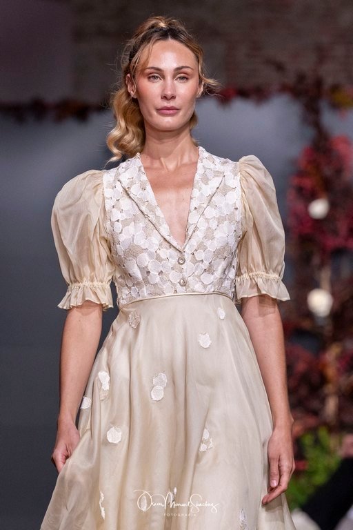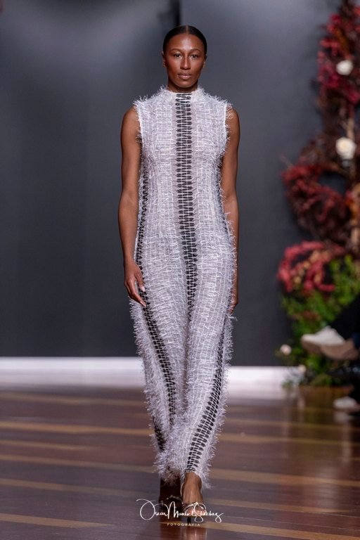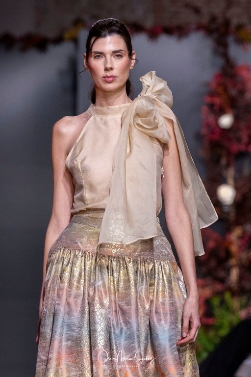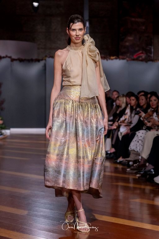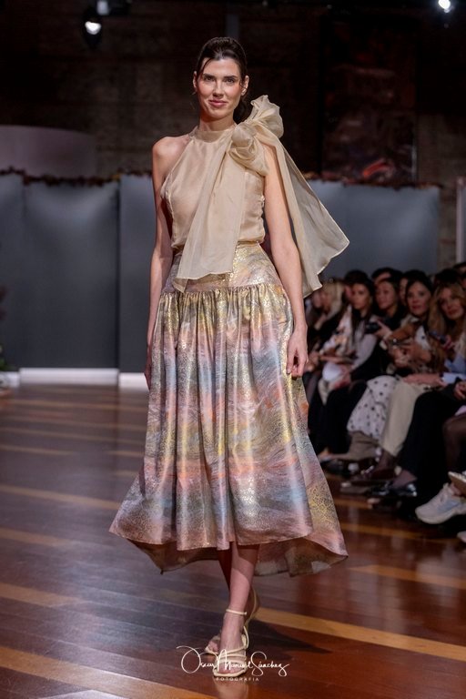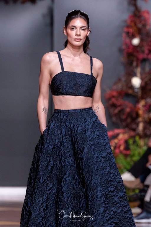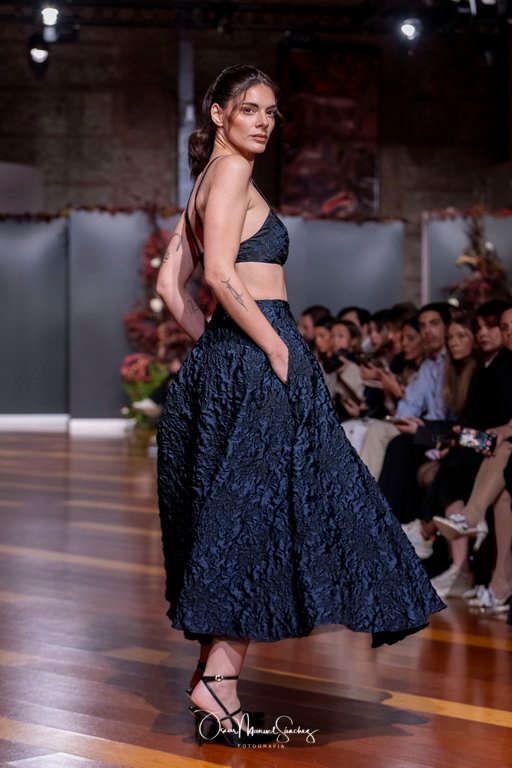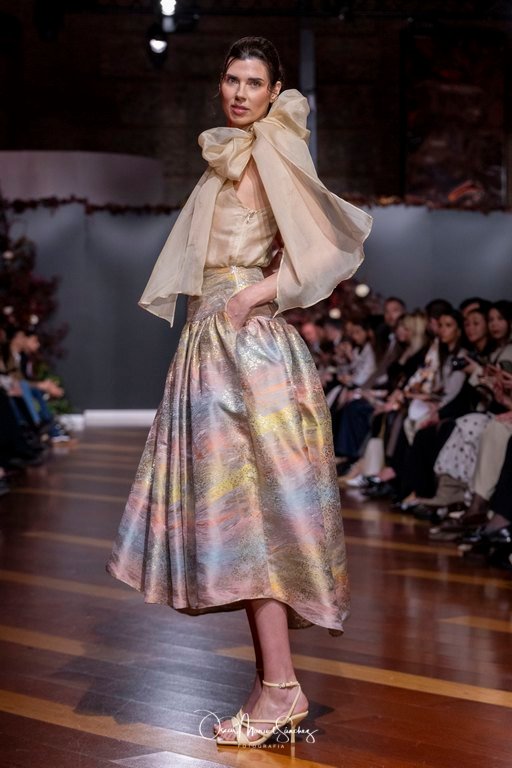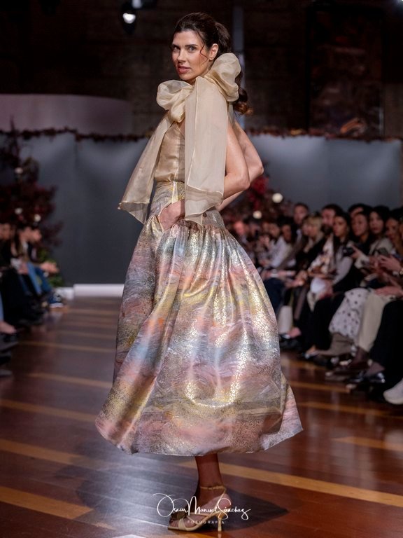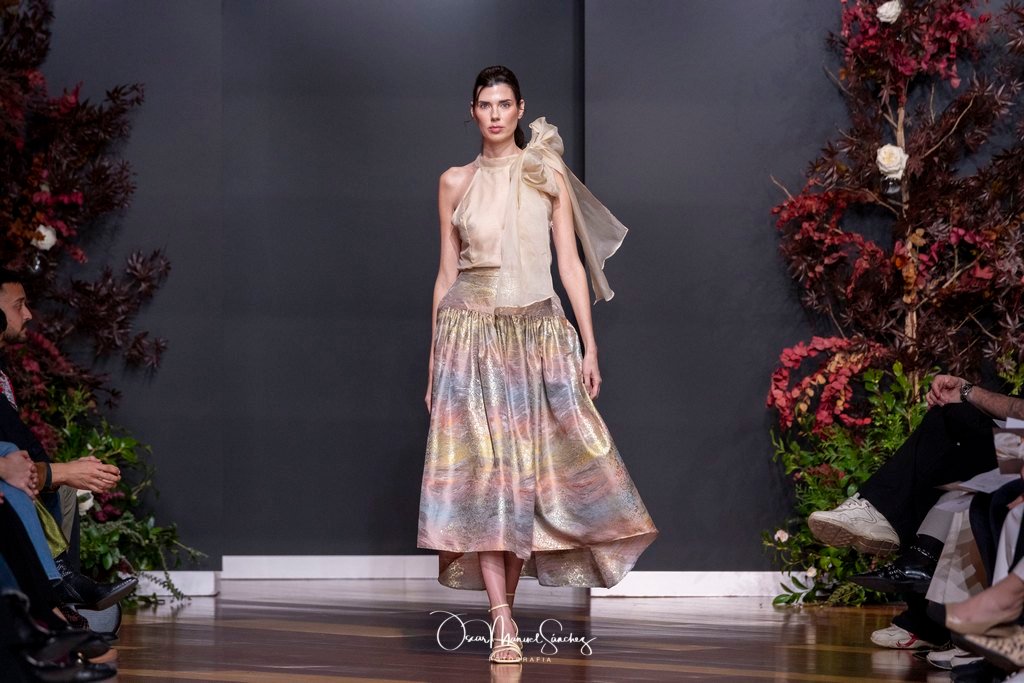 Uno de los elementos más comentados fue el uso de Inteligencia Artificial para reinterpretar algunas de sus piezas más emblemáticas, demostrando que tradición y vanguardia pueden convivir sin perder identidad. Esta apuesta tecnológica reforzó la narrativa de una diseñadora que, a sus 65 años, continúa desafiando límites y demostrando que la moda es un lenguaje vivo.